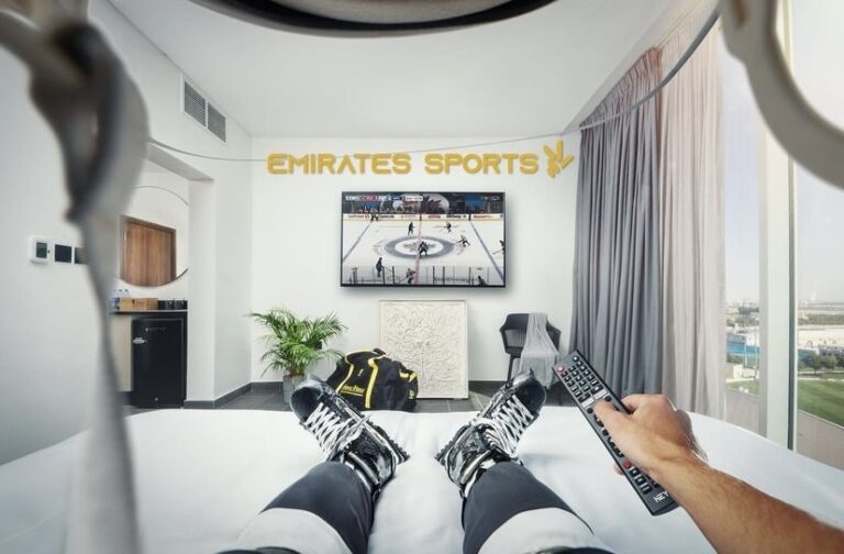 Emirates Sports Hotel is a first of its kind sports hotel in the Middle East. Located in the Sports City neighbourhood and consisting of 200 ultra-modern units, Emirates Sports Hotel offers a community driven one-stop lifestyle destination where people and sports connect as one.